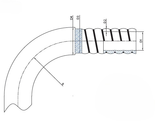 内层平滑的PTFE软管,带不锈钢螺旋钢丝;